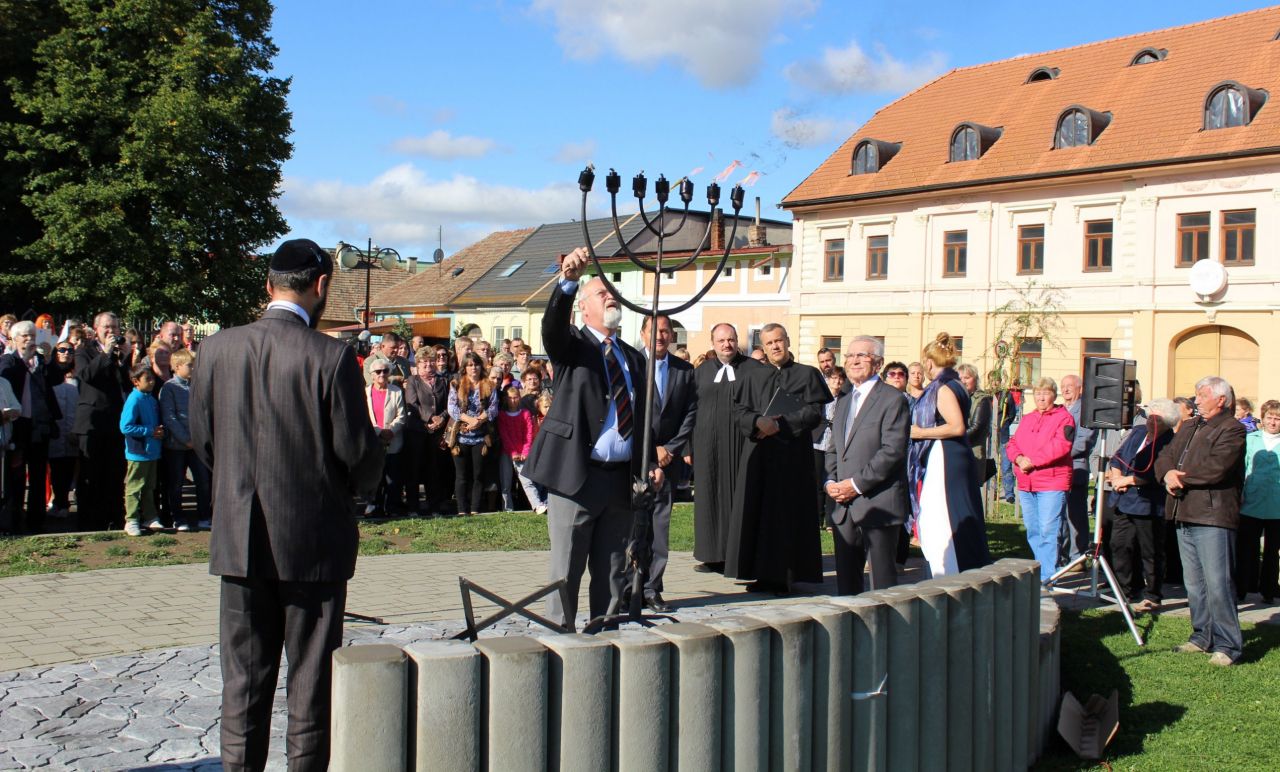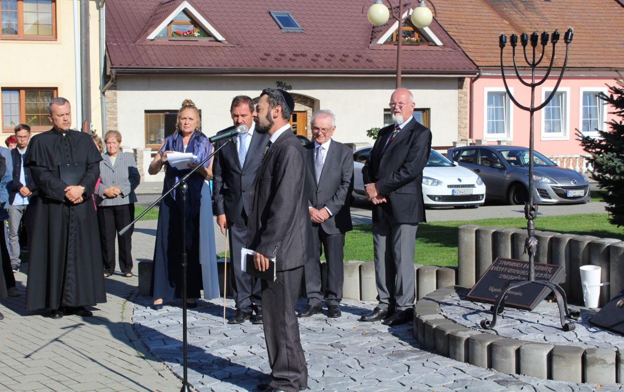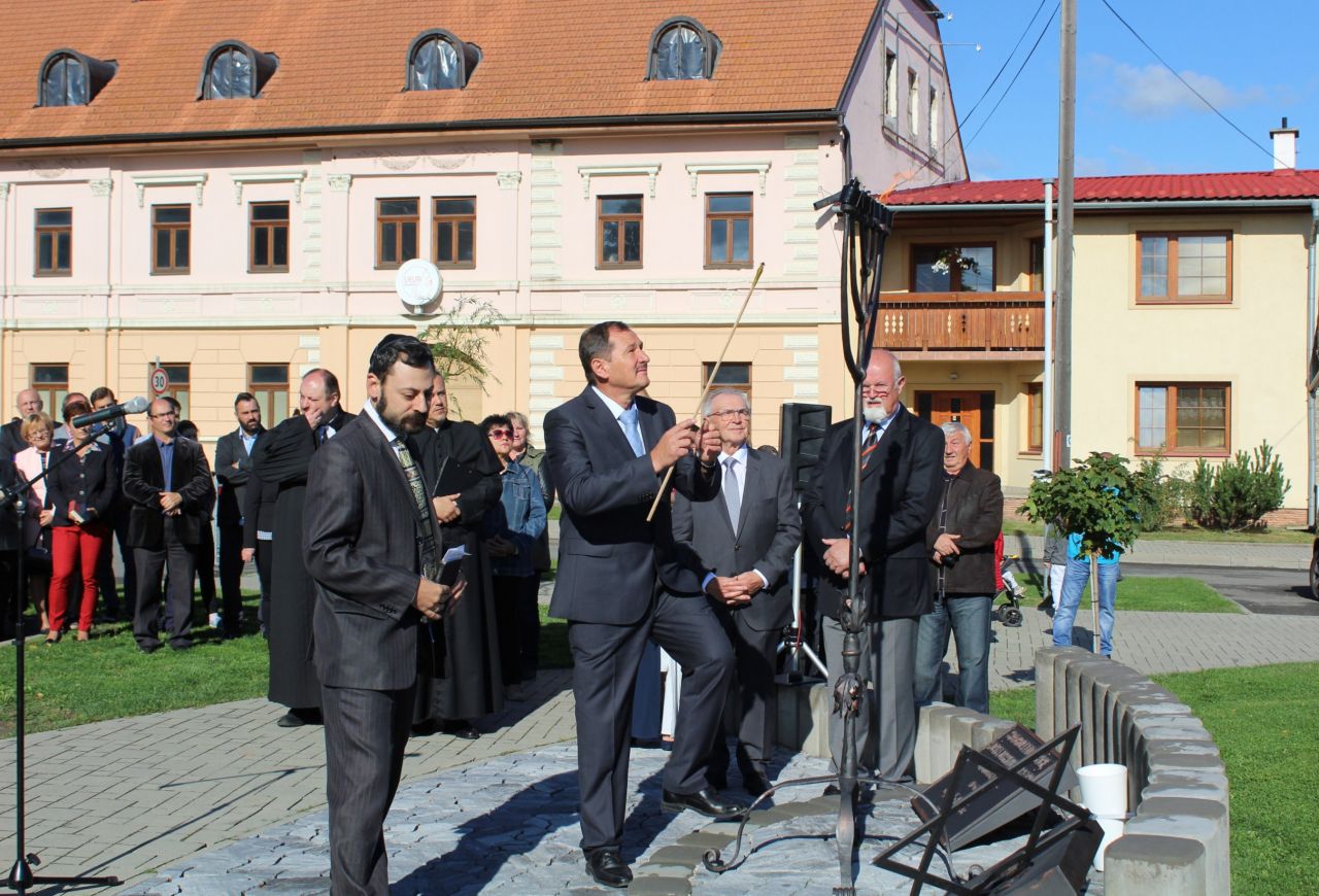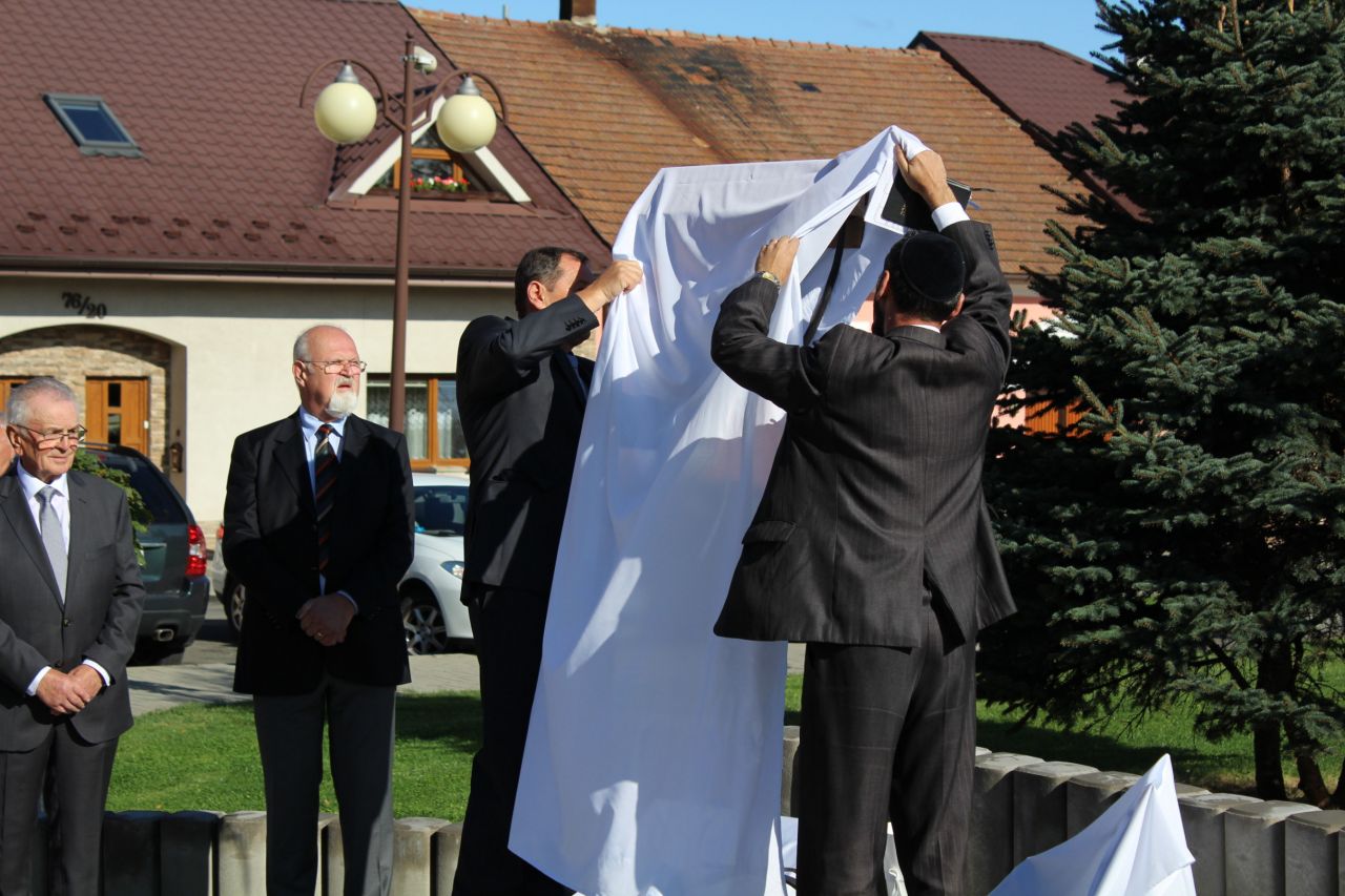 Pamätník, ktorý teraz odhalíme na počesť všetkých židovských spoluobčanov deportovaných z našej obce pred 75 rokmi, nech je výrazom našej pokory a úcty pred ich nesmiernym utrpením,... nech je výrazom ľútosti nad zločinmi, ktoré boli na nich spáchané a výrazom spolupatričnosti a spolucítenia s pozostalými ...