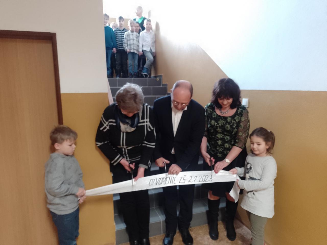 Po úspešnej kolaudácii sa slávnostné otvorenie nových priestorov uskutočnilo dňa 02. februára o 14:30 hod. za účasti žiakov, rodičov, vedenia obce, poslancov OcZ, vedenia ZŠ a MŠ, rady školy ZŠ, a pozvaných hostí.